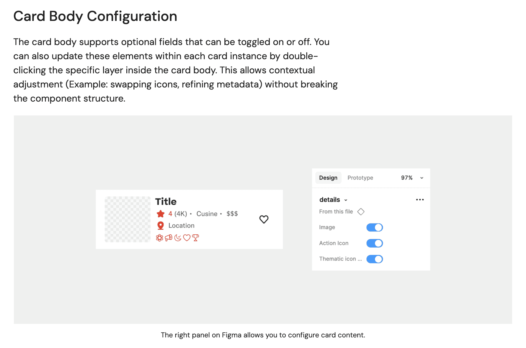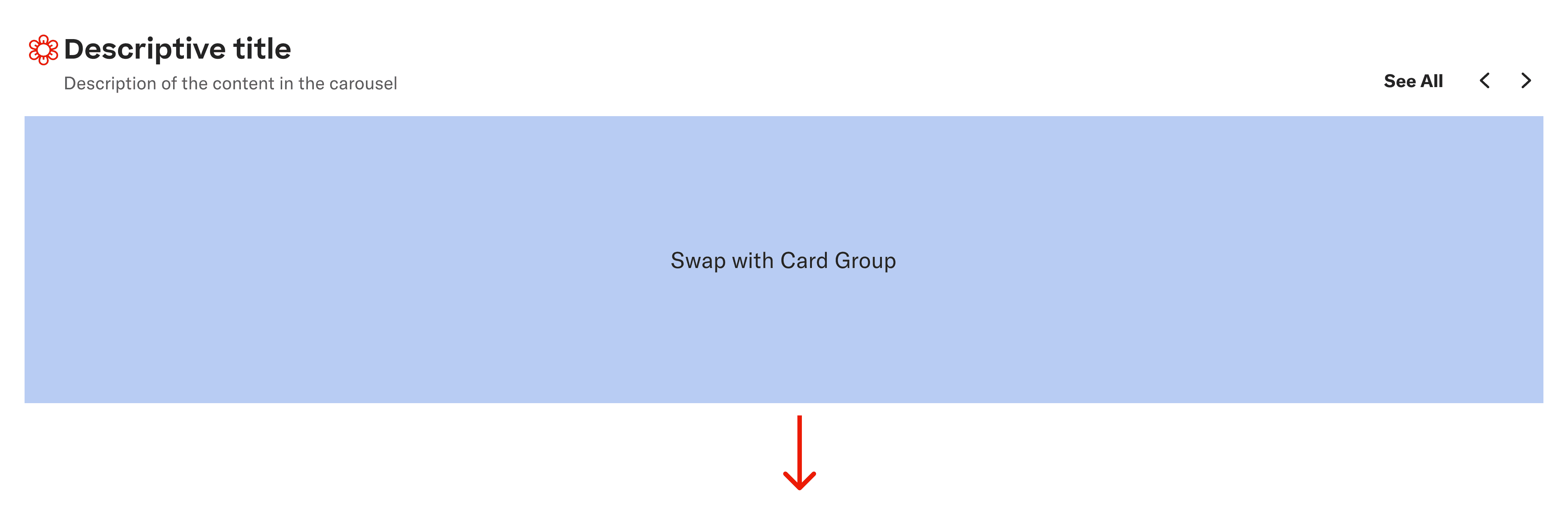 To streamline this workflow, we introduced a dedicated card group pattern in the UI Kit. This pattern can be dropped directly into the carousel placeholder and swapped between different card group configurations from properties panel.