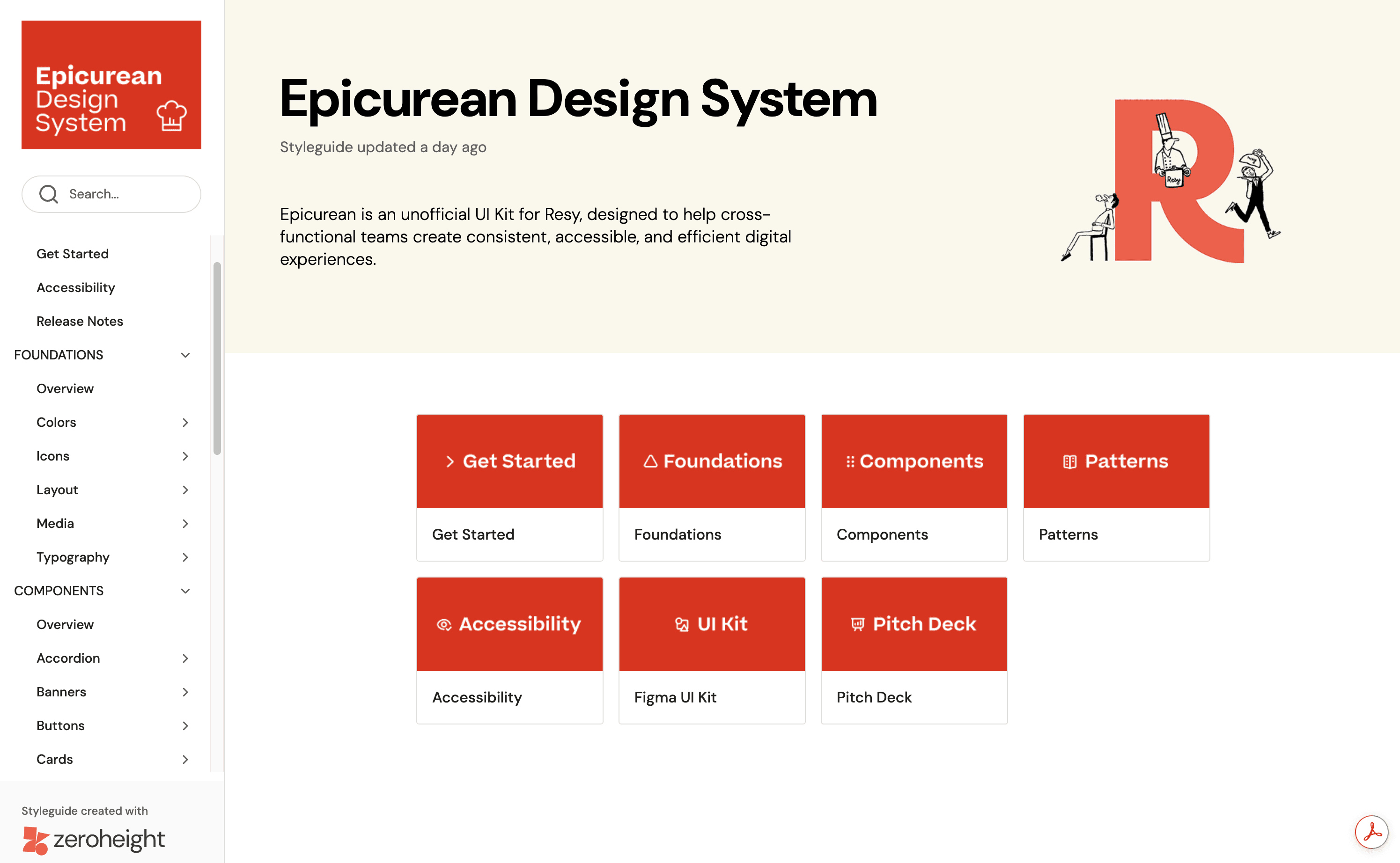 Epicurean Design System Documentation in Zero Height
