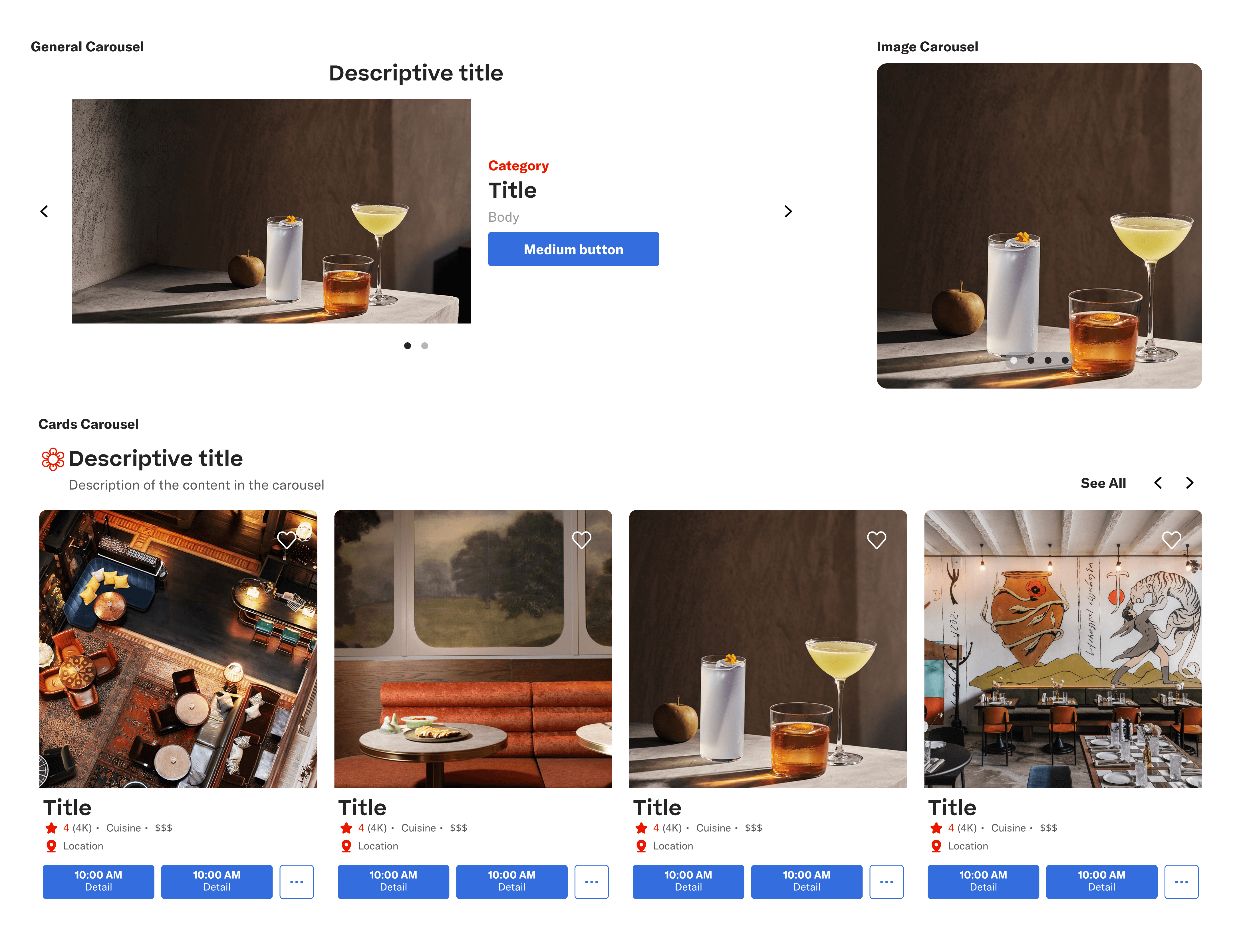 Epicurean provides three distinct carousel patterns designed for different content needs and user scenarios, helping teams move faster while maintaining consistency across experiences.