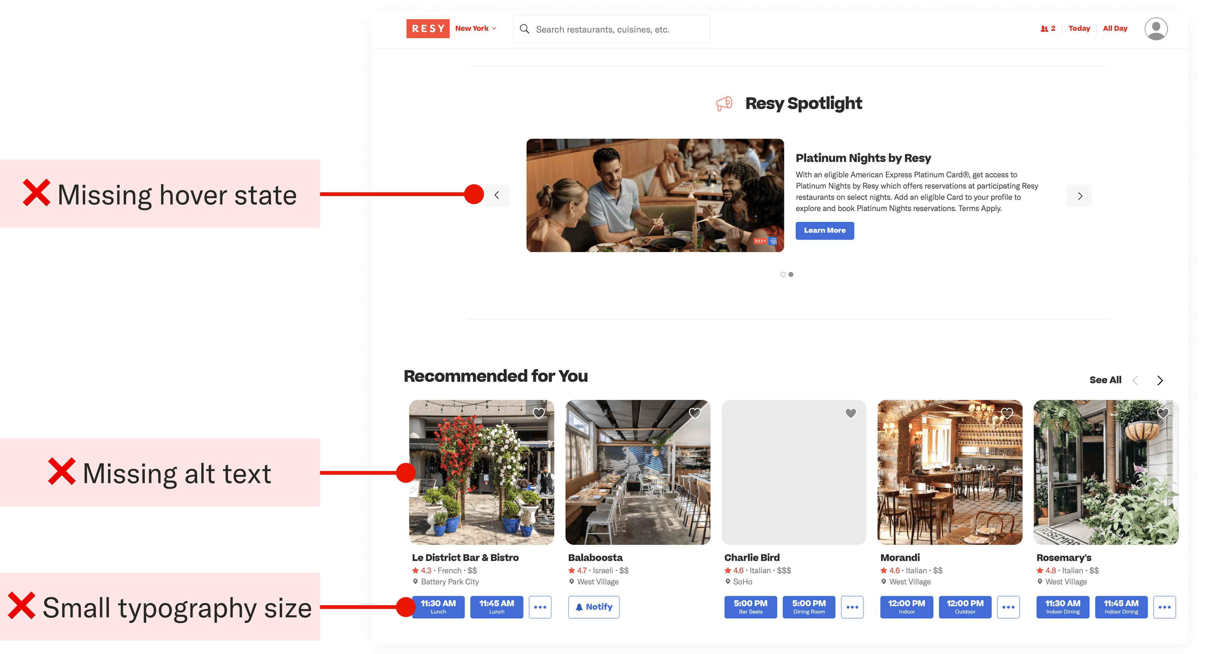Deconstructed the current Resy website