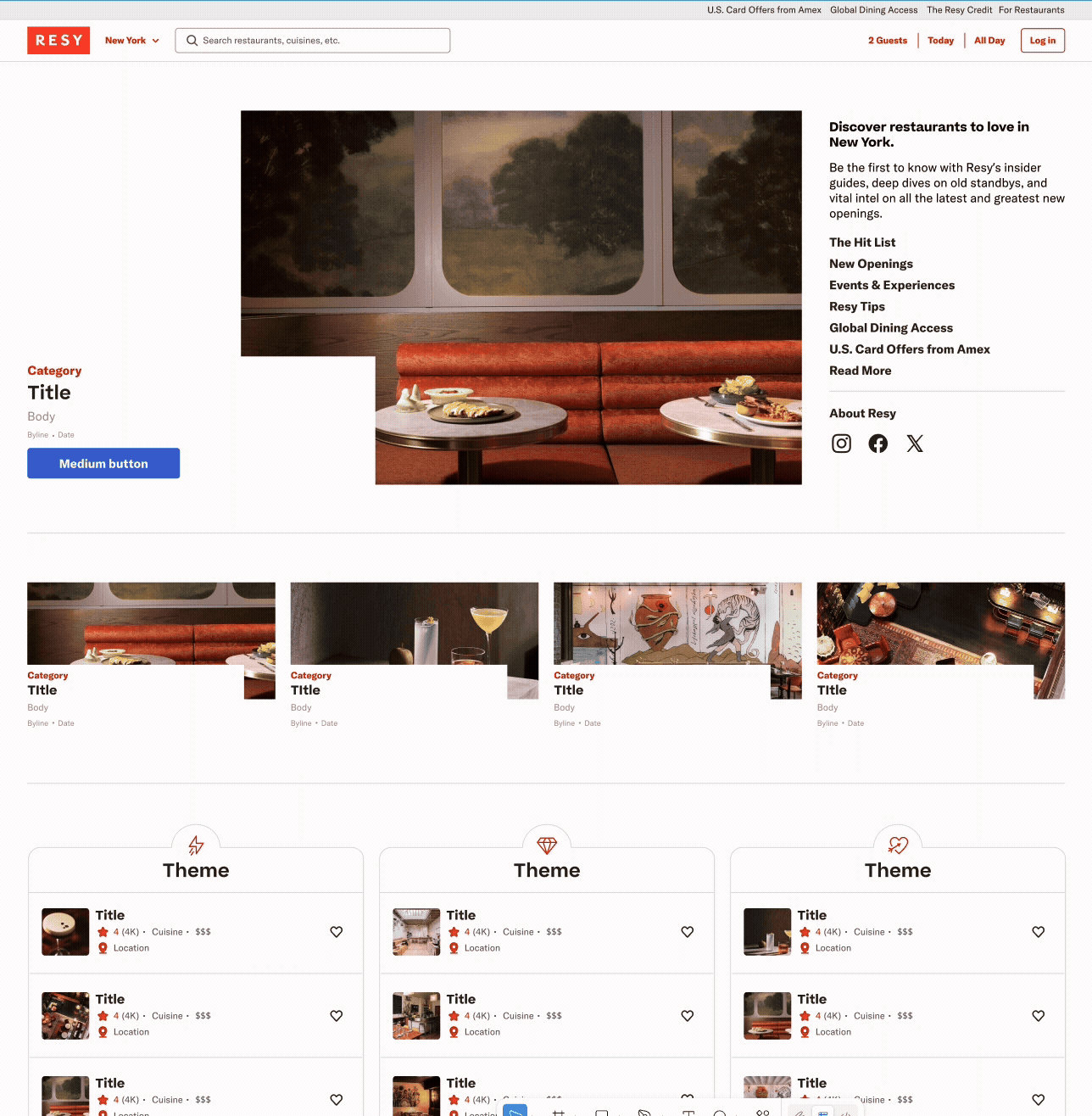 Resy is a global dining platform that brings together restaurant discovery, reservations, and dining culture. Epicurean is a conceptual design system created to support consistency, accessibility, and scale across Resy’s diner-facing experiences.