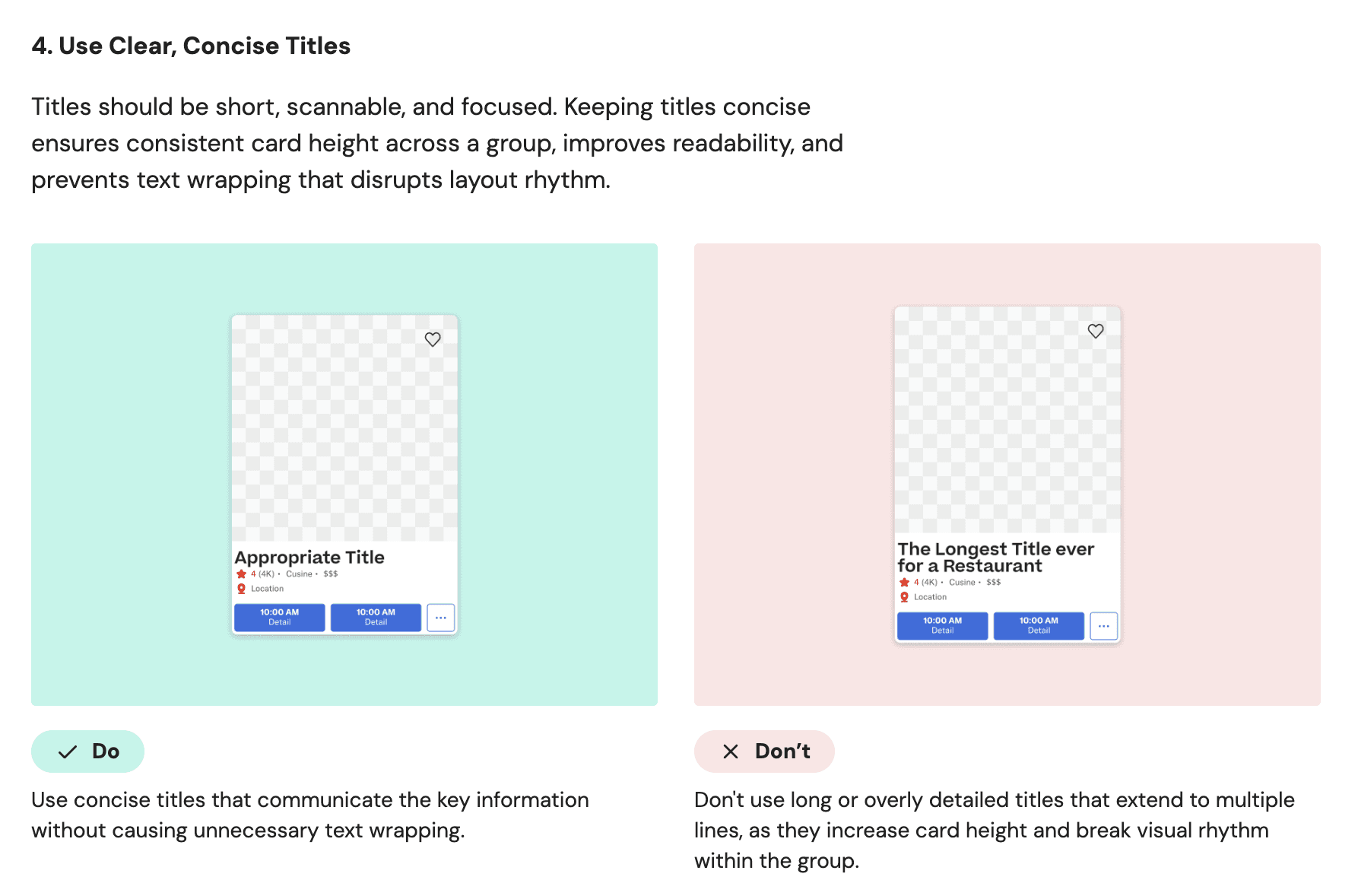 We documented each component with detailed introductions paired with visual examples and clear usage guidelines. Every component page includes practical sections covering When to Use, Configuration Options were applicable, and Implementation Best Practices. We structured the information architecture to be intuitive and scannable, using plain language that serves both designers and developers. Visual do's and don'ts illustrate proper component applications.