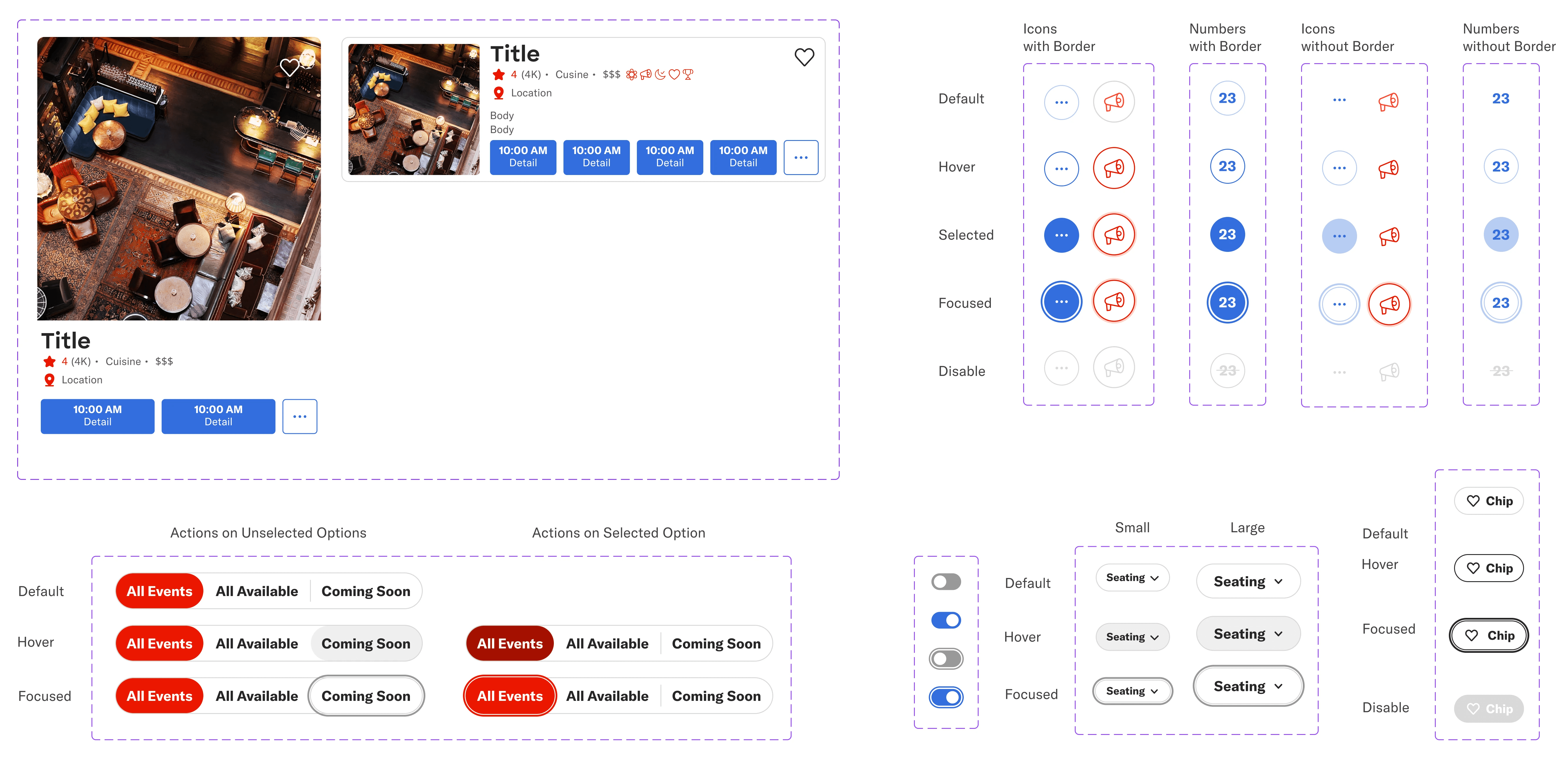 We built components like buttons and cards with clearly defined states so that designers don’t have to recreate variants manually. While we allowed visual customization, we locked down interaction patterns to guarantee consistency.